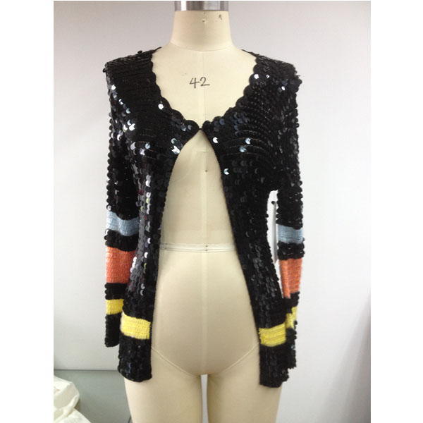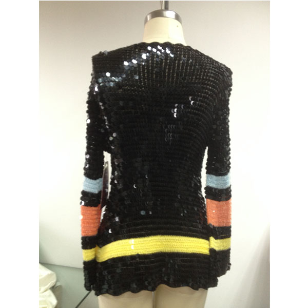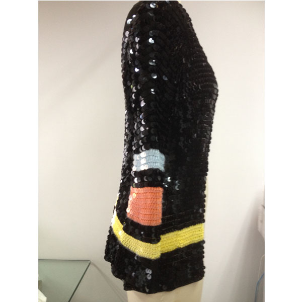 產(chǎn)品號(hào):T001-3珠片上衣服裝加工 可選顏色:圖片色 可選尺碼:SX、S、M、L 適合季節(jié):秋季 風(fēng)格:only 描述:無(wú)數(shù)黑色的珠片連接而成,猶如漫天閃耀的繁星,閃閃發(fā)光,讓你成為人群中亮眼的一抹! |